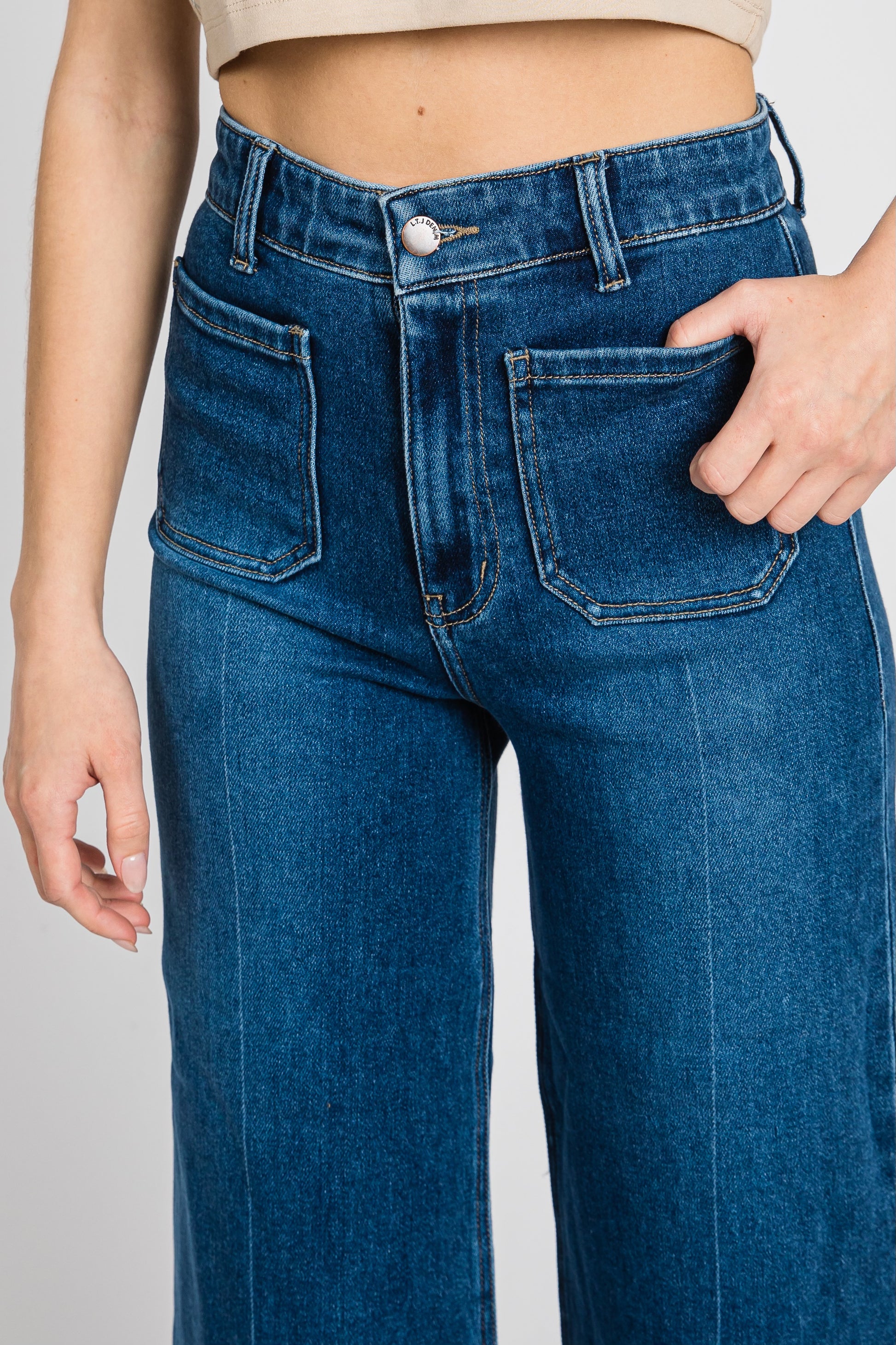 One of our top sellers! This style is so flattering on every body type! Darling front pocket details. Wide leg, high rise. Super soft and stretchy. Runs true to size.
