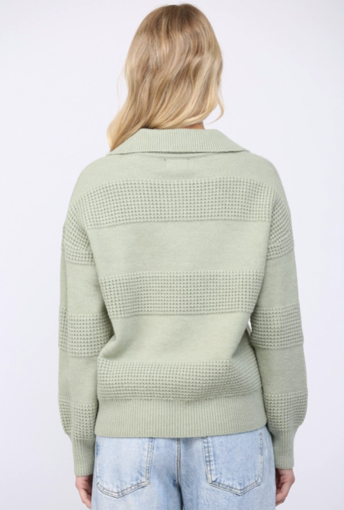 Beautiful sage color. Split neckline sweater. Perfect for the transition into Spring. True to size